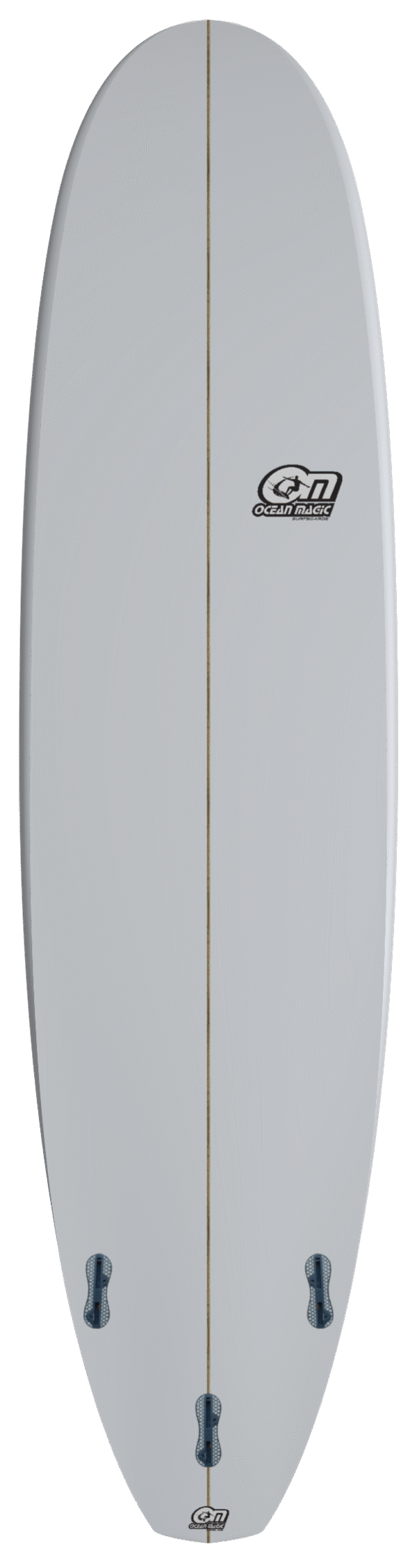 It’s flat through the middle and features a slight Vee running through the tail with a double concave aiding manoeuvrability and assisting in the turns. Designed to catch waves, paddle easily and be relatively stable with a wider fuller nose. It also has added volume for floatability and learning.